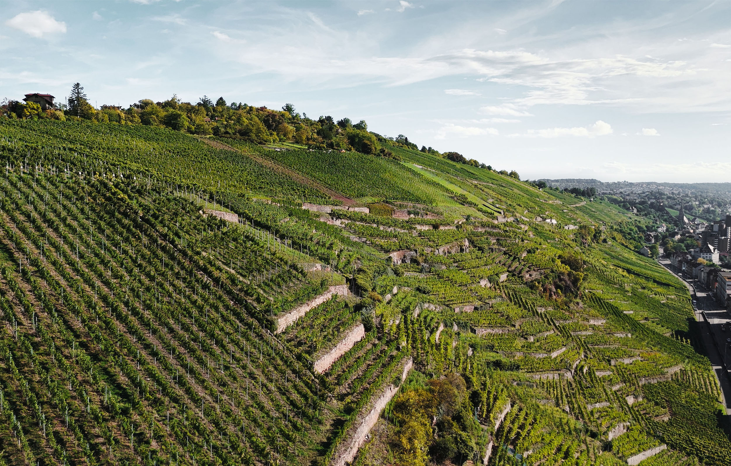 Die Steillagen entlang von Neckar & Enz gehören seit Jahren zu den prägendsten Rotweinlagen Deutschlands. Die für Rotwein idealen landschaftlichen und klimatischen Bedingungen vor Ort ermöglichen eine gleichmäßige Ausreife der Trauben und den Aufbau von Substanz. Die langen Vegetationsperioden schaffen verlässliche Voraussetzungen für voluminöse, strukturierte und gehaltvolle Rotweine.